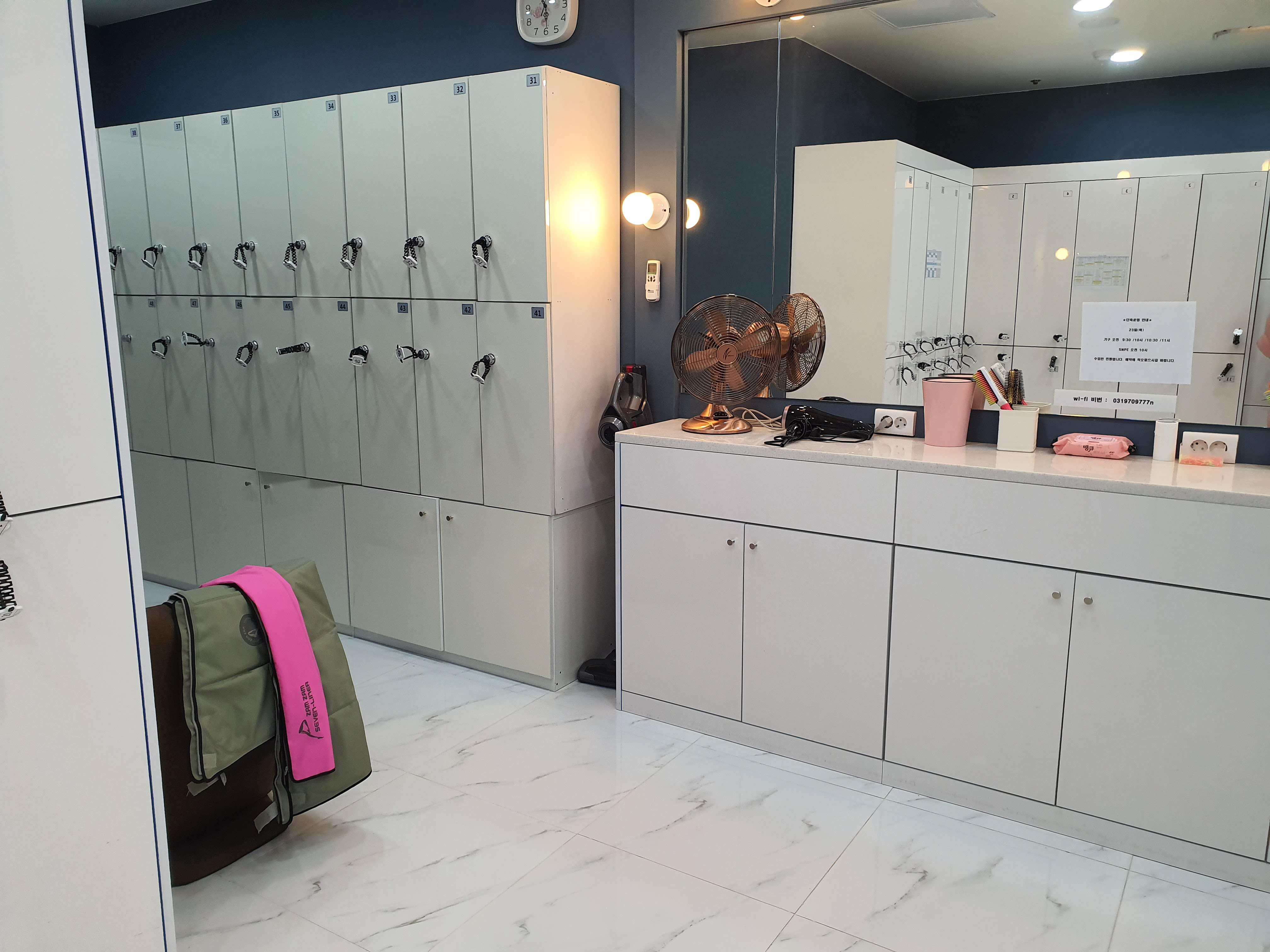 운동하러 오면 여기다 짐을 맡기면 된다.
