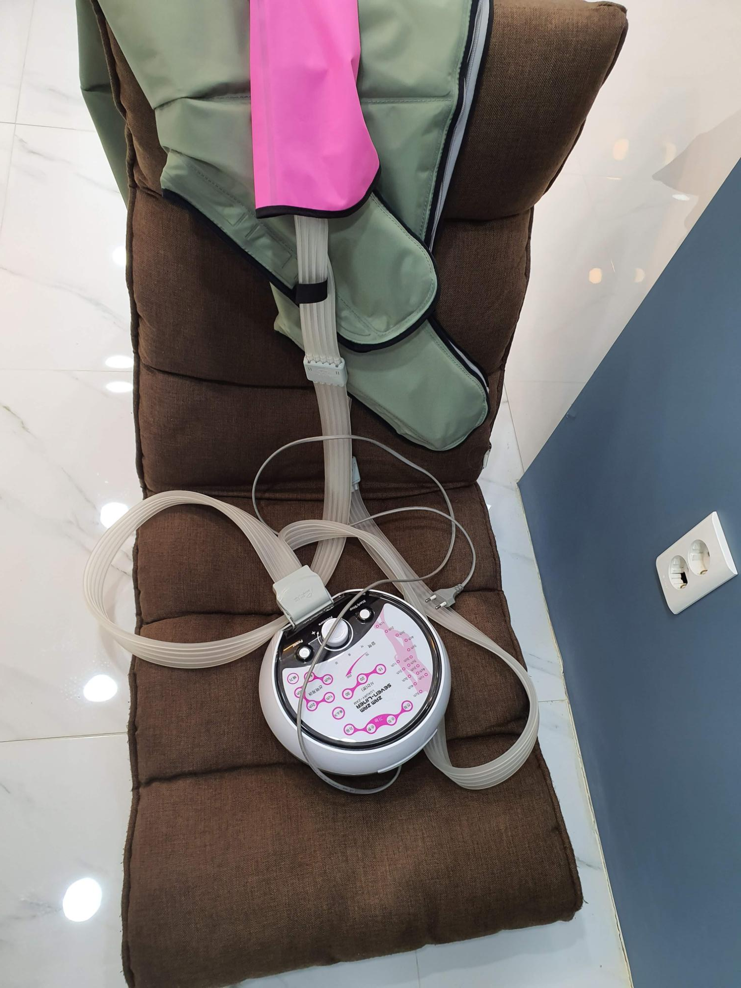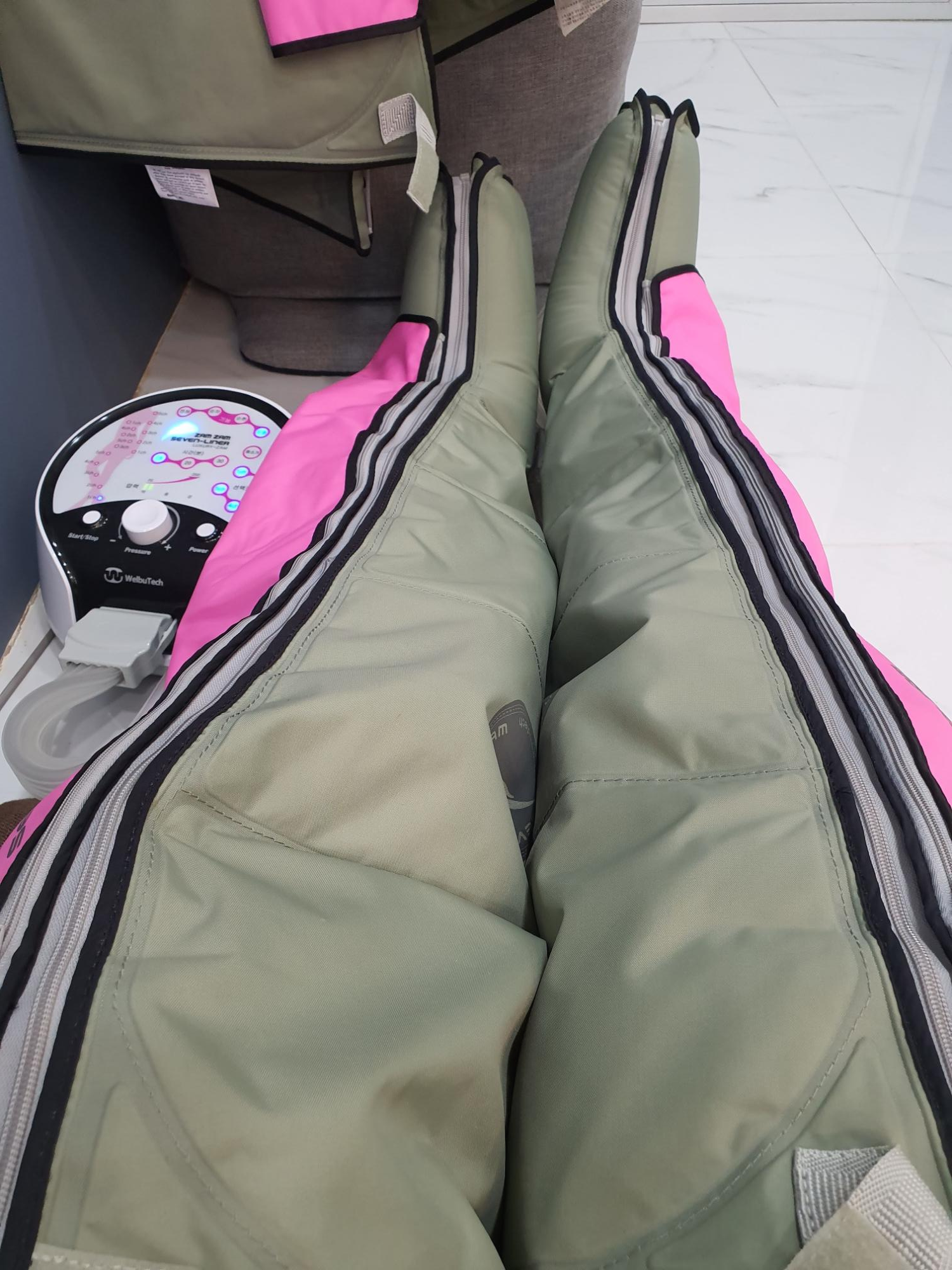 다리에 압력을 주고 마사지를 해서 붓기를 빼 주는 기구라고 할 수 있다.