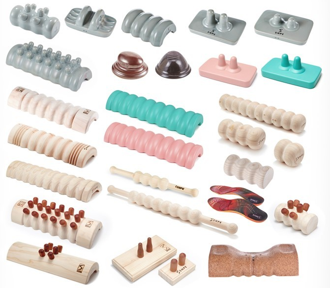 나무 막대기로 문지르고, 나무 베개에 허리 받치고 다리 들어올리고,