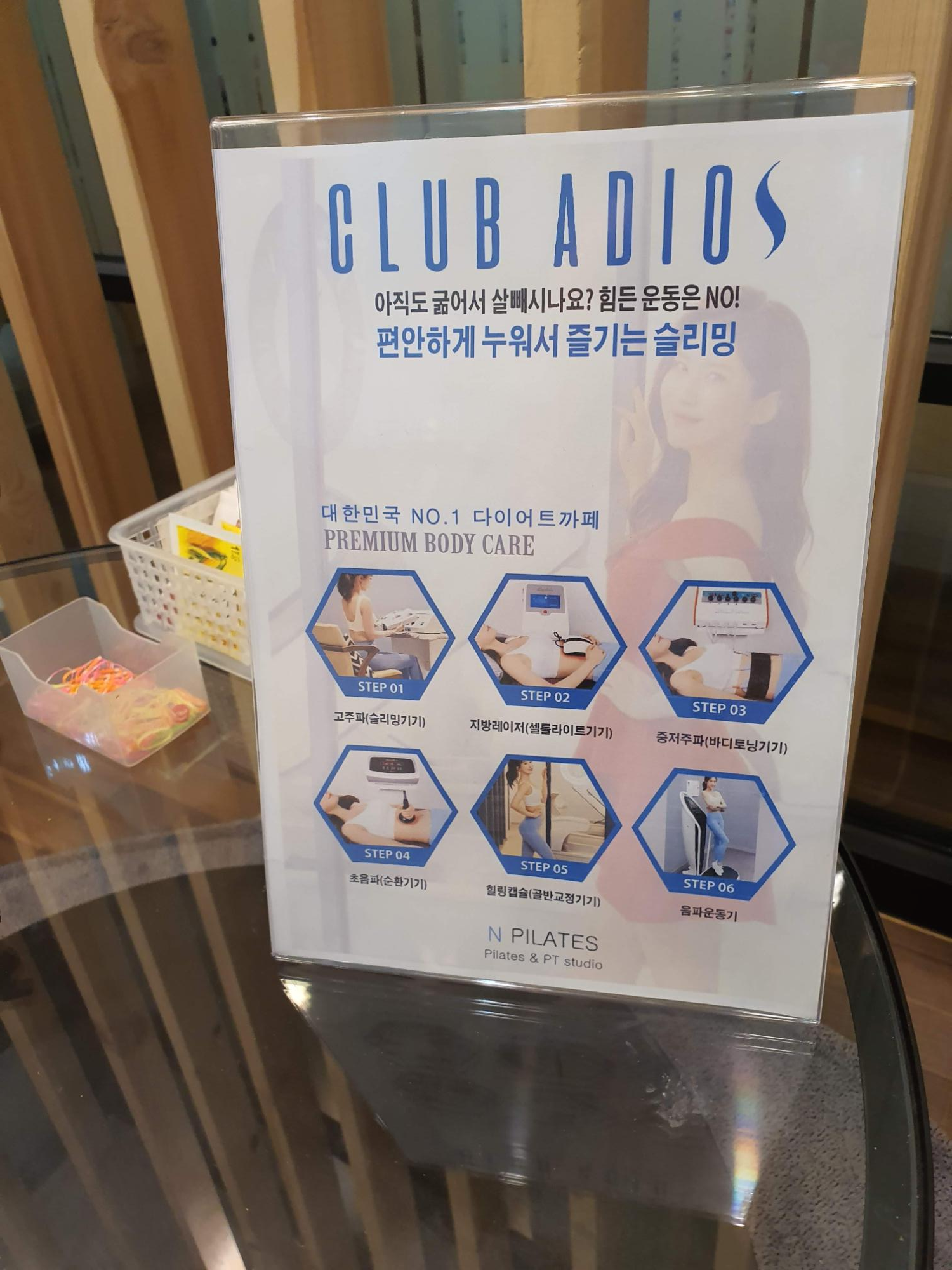 이곳은 필라테스도 하지만 아디오스도 함께 받을 수 있는 곳이다.