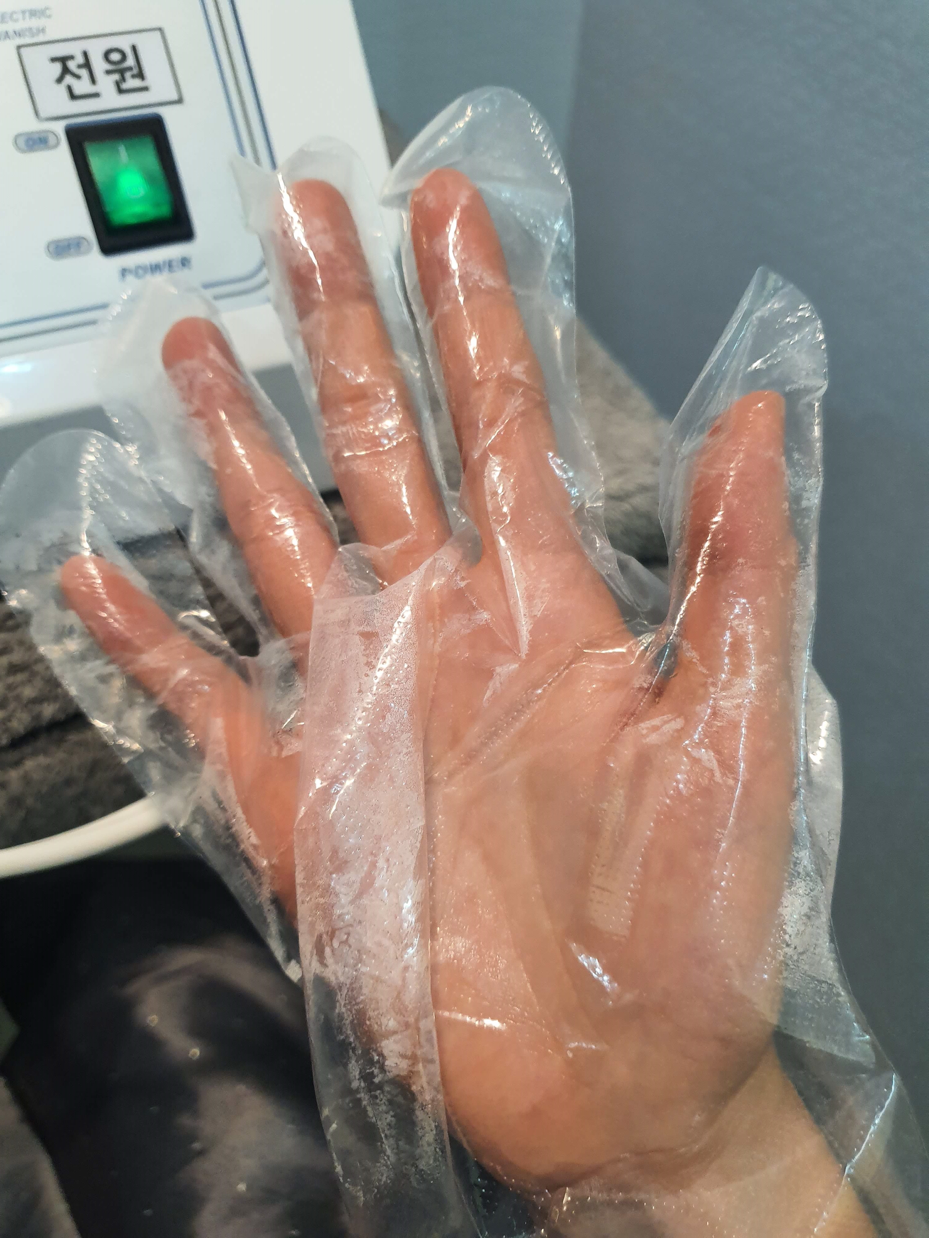 이 기기를 사용할 때에는 비닐장갑을 껴준다.