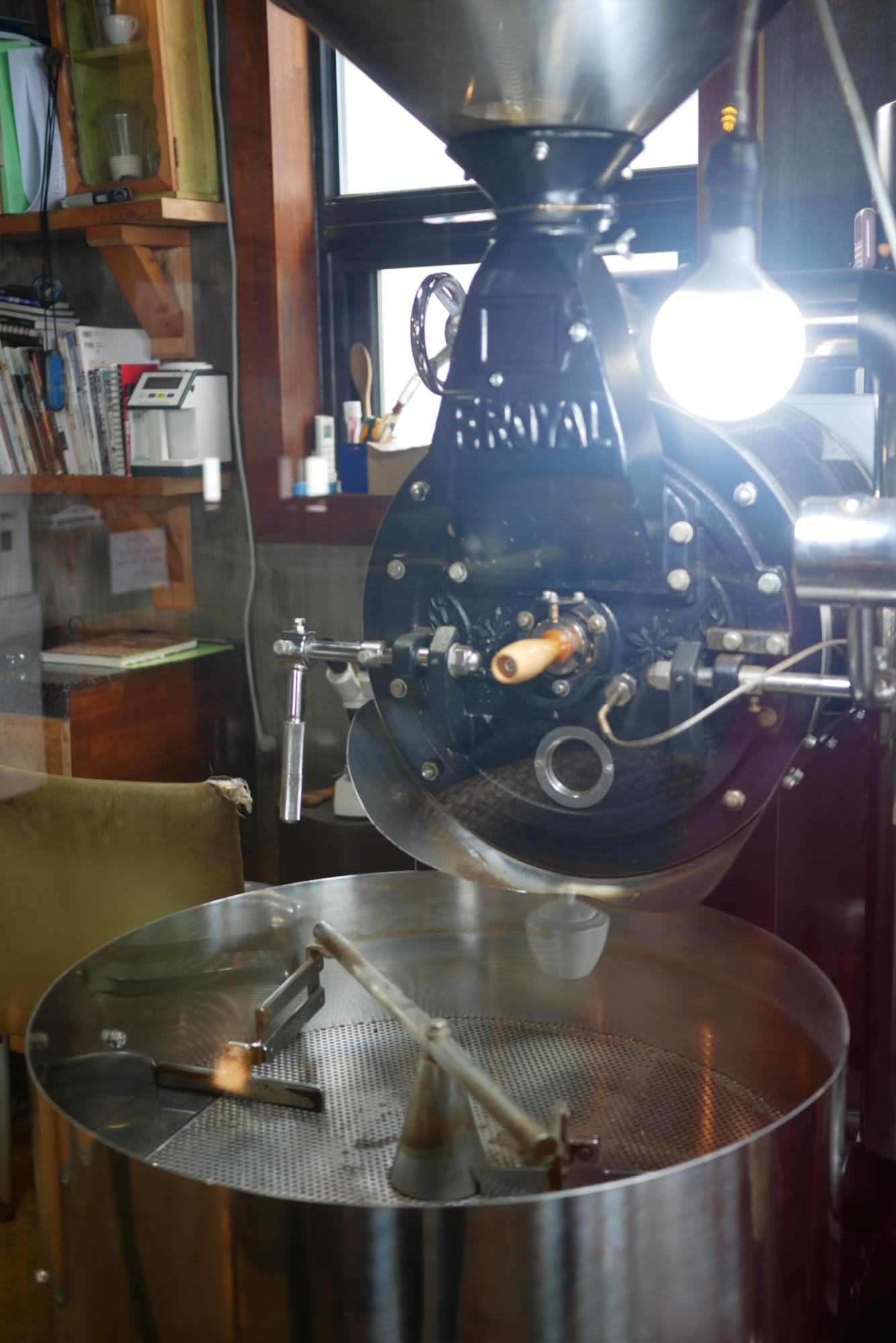 가까이서 본 로스팅 기계 세월의 흔적이 보이는 것 같다.