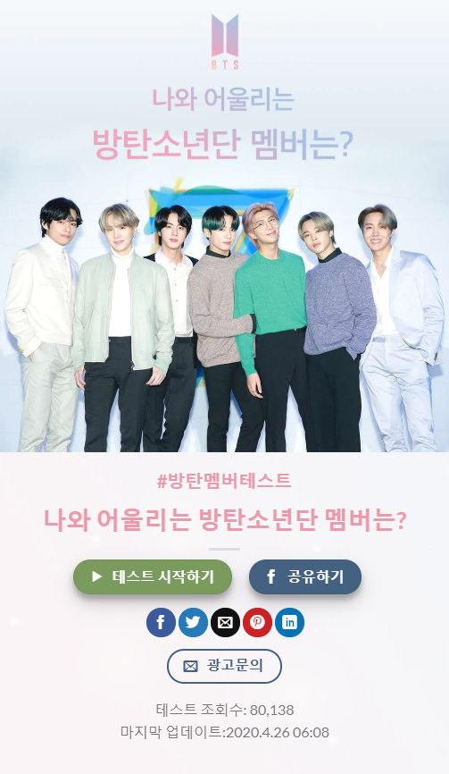 나와 어울리는 방탄소년단 멤버는?
