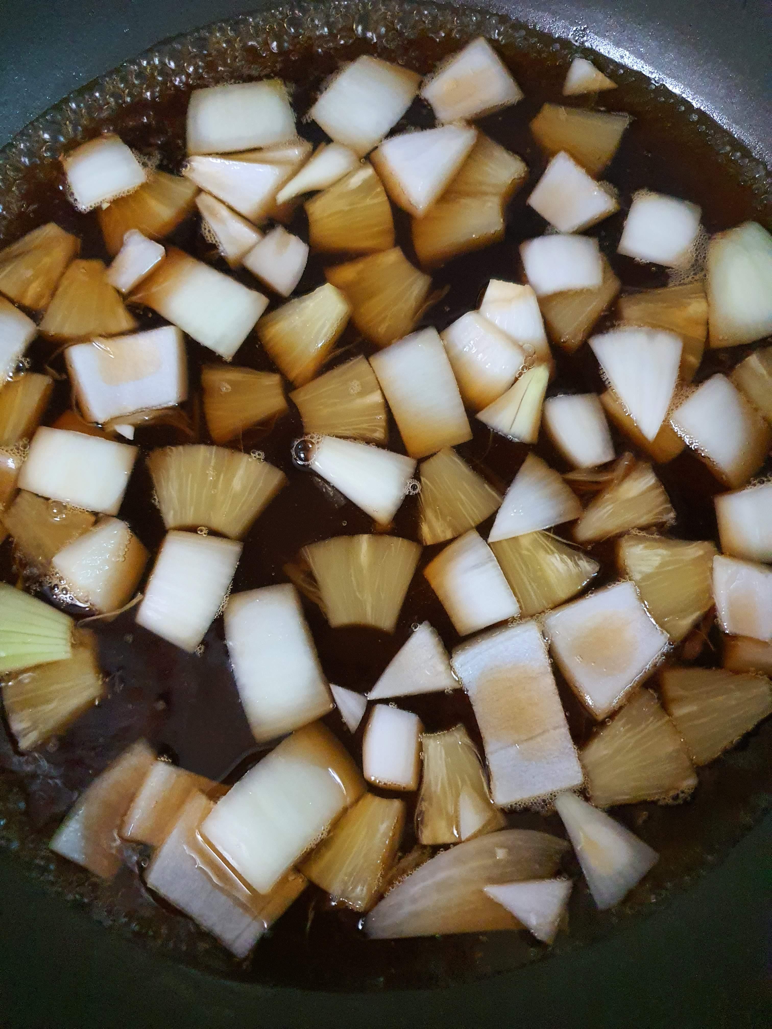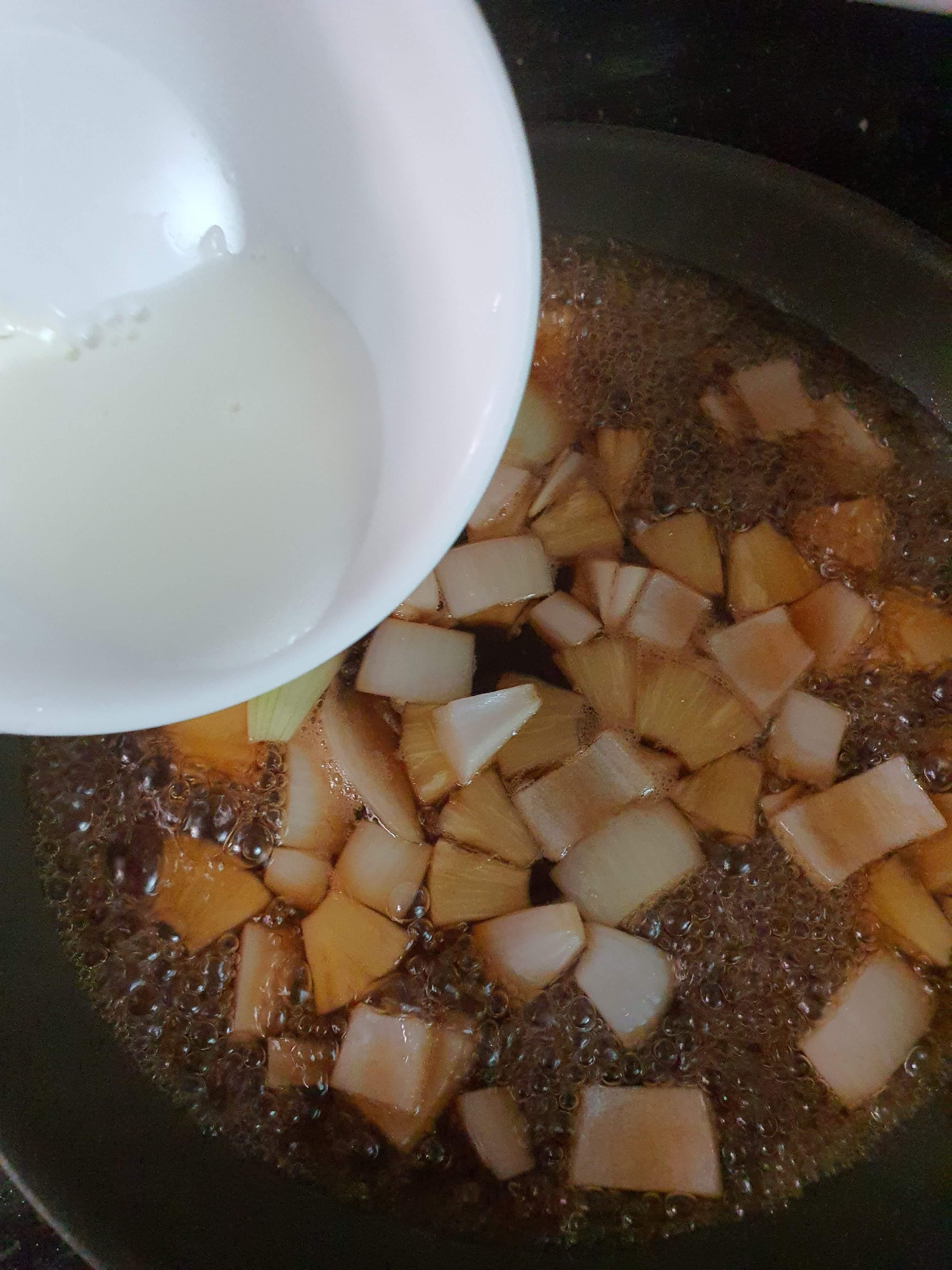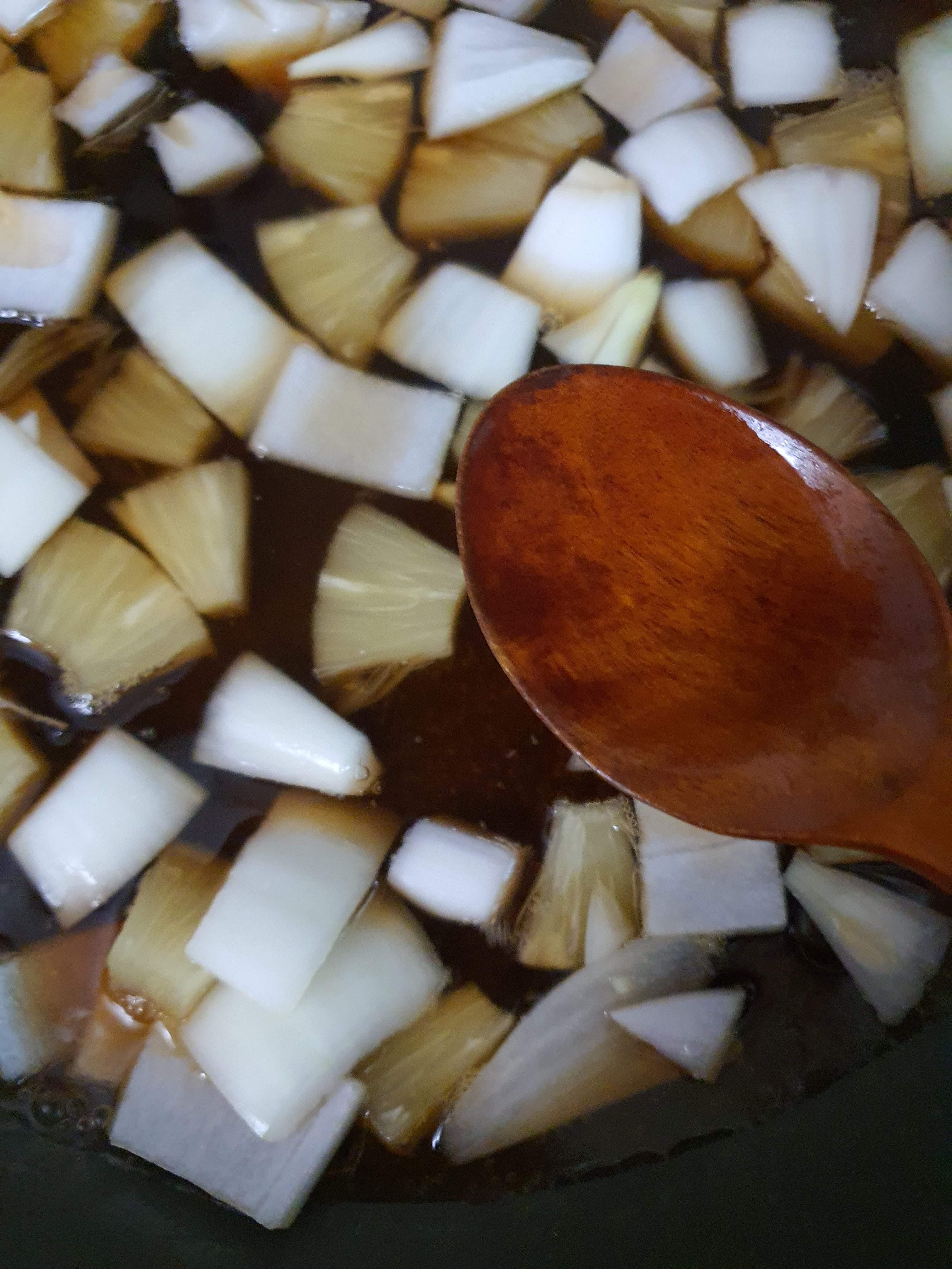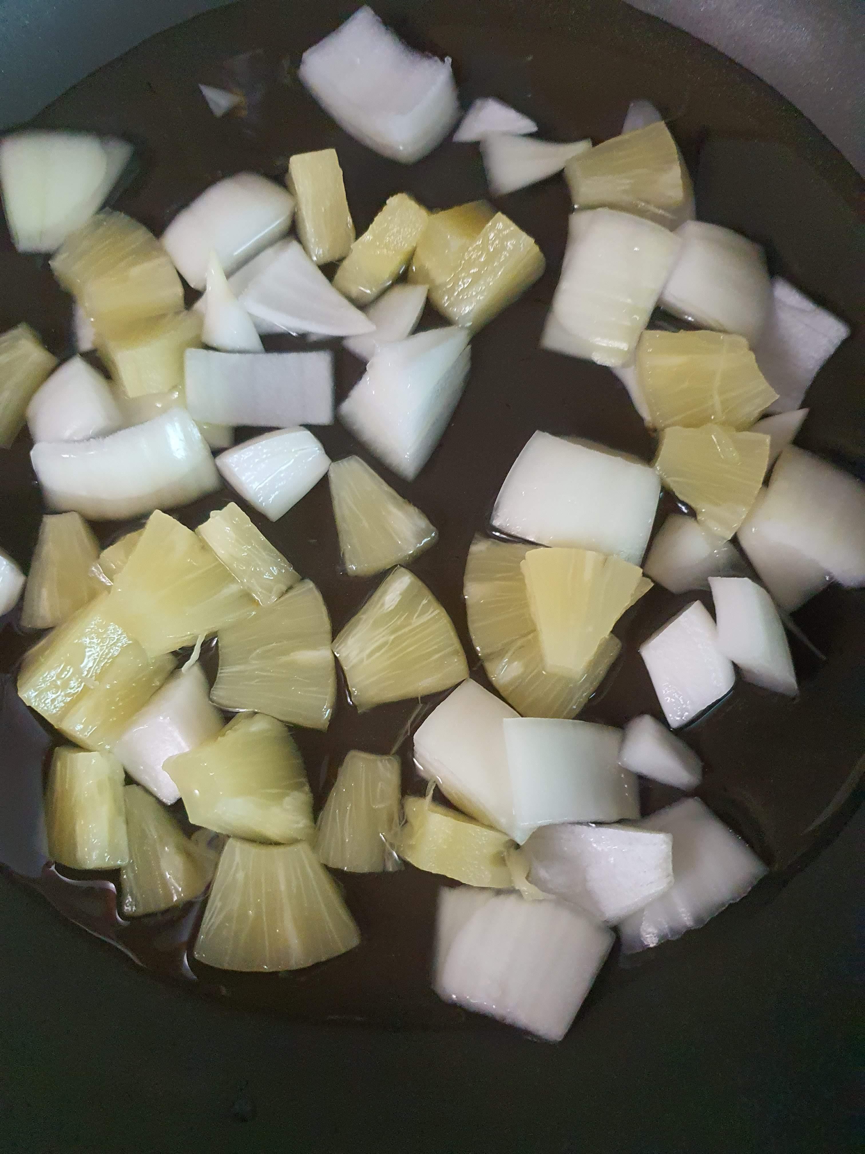 야채가 많이 없어서 양파와 파인애플만 넣었다. ㅎㅎ