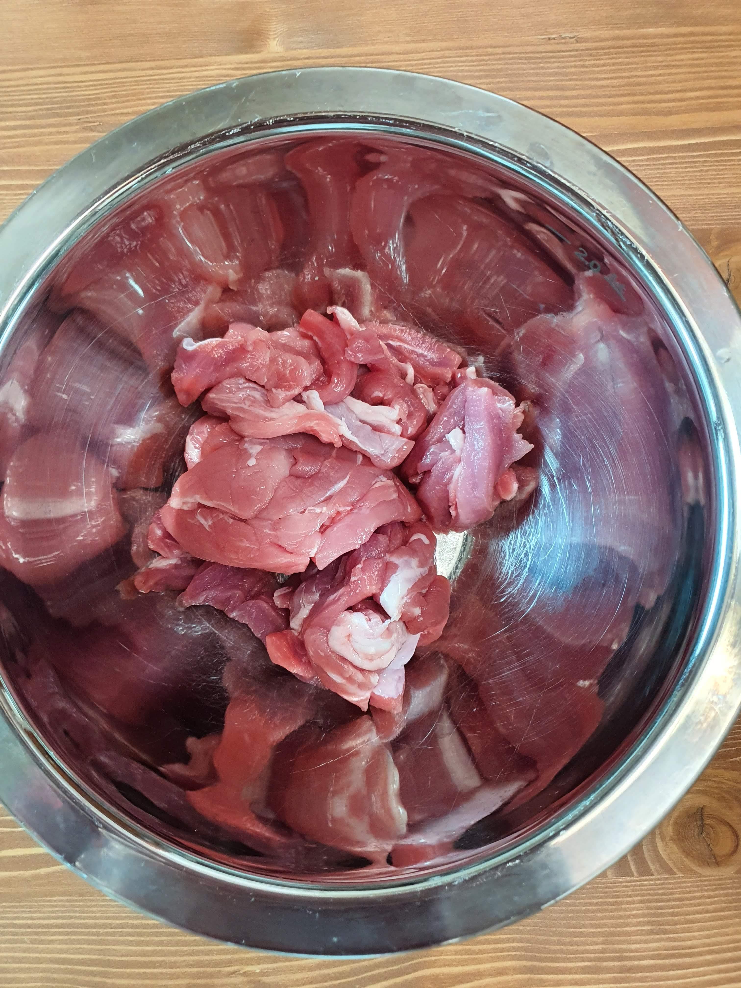 먼저 돼지고기 안심을 한 근 사 왔다.