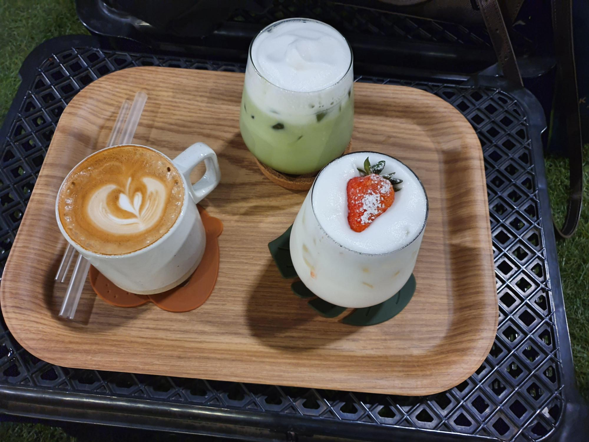 이번에 시킨 메뉴는 말차라떼, 딸기라떼, 카페라떼~!