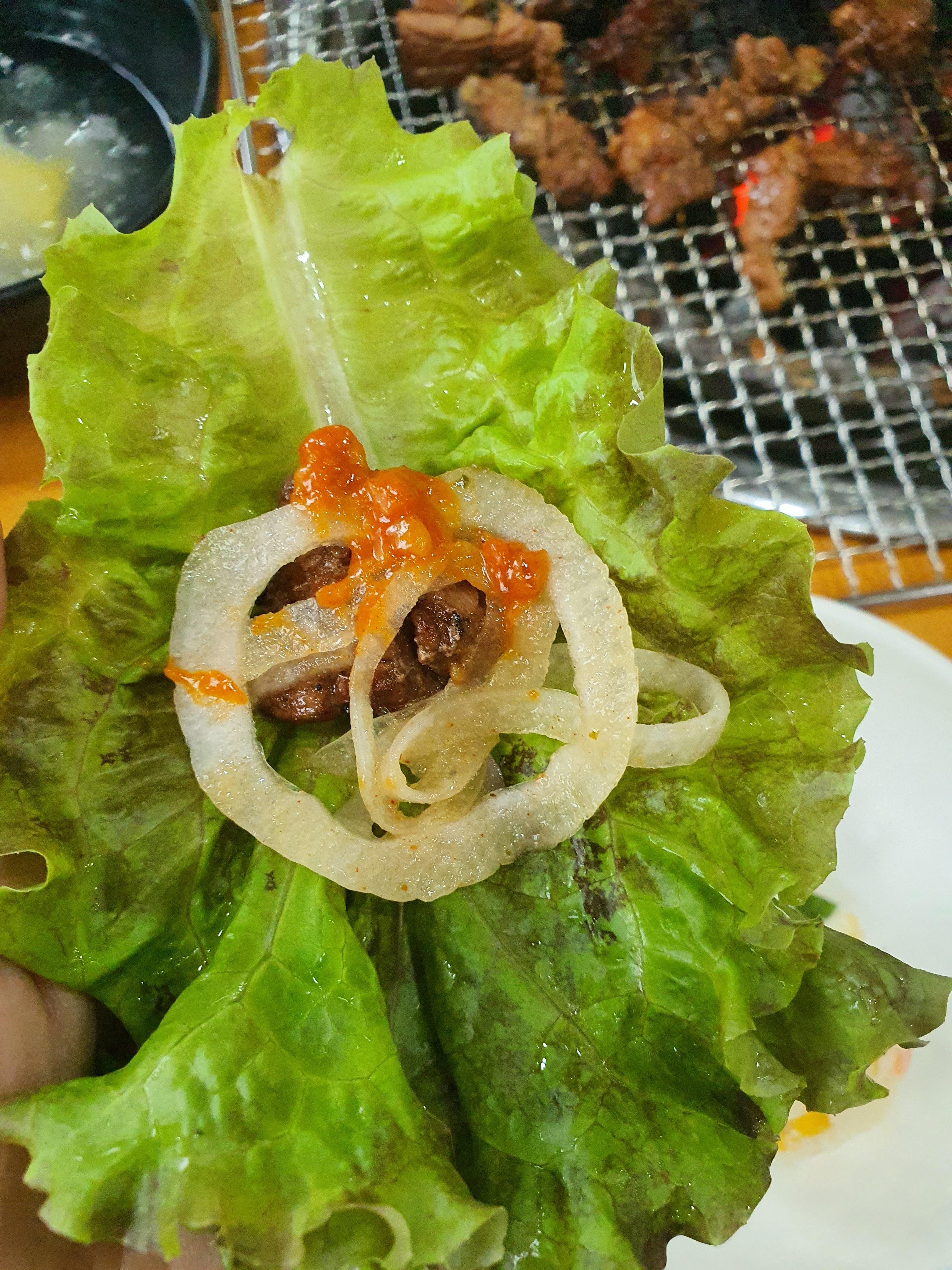 소스를 곁들인 양파와 먹어도 맛있고