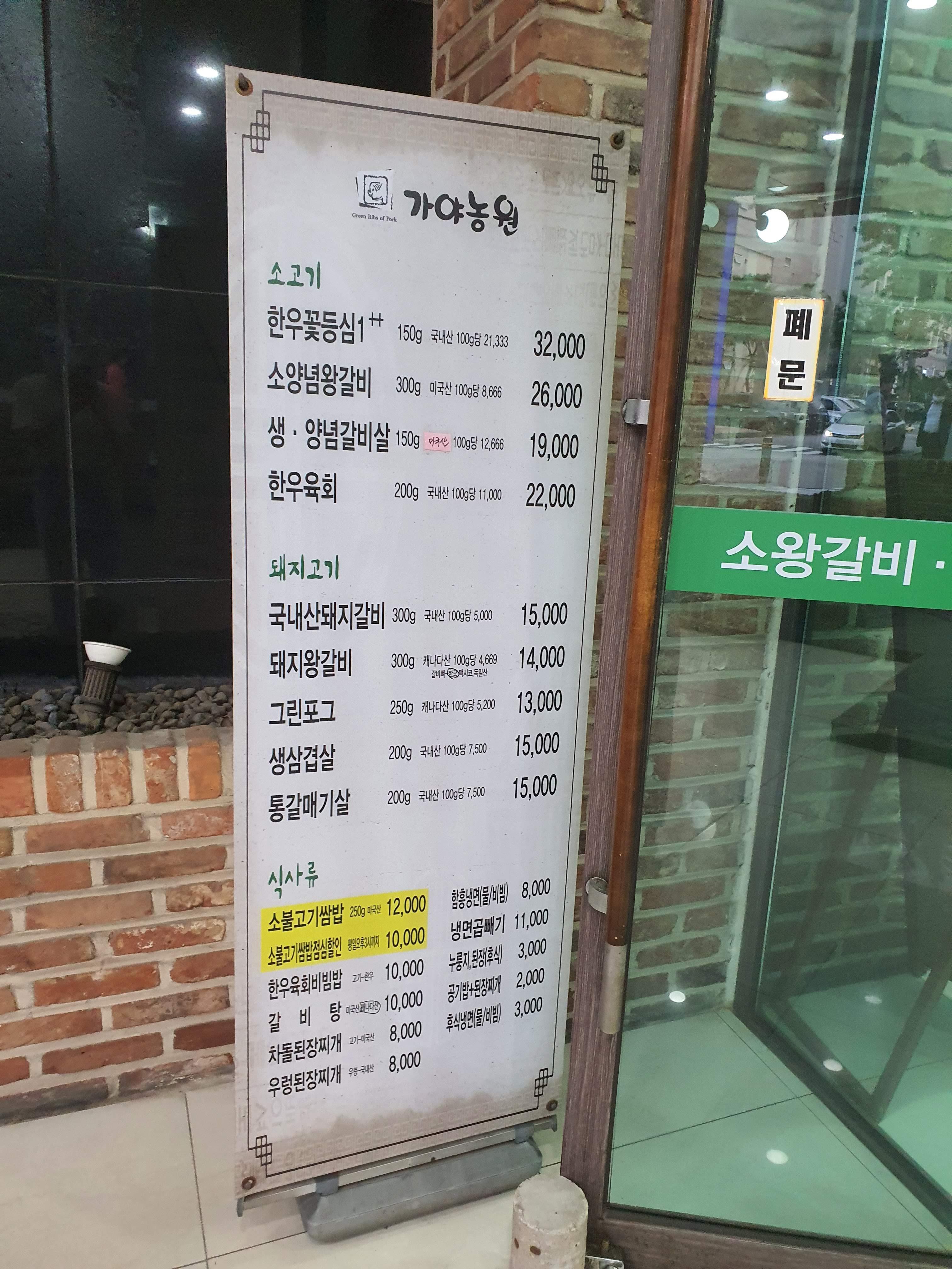 입구에 있던 메뉴판을 찍어봤다.