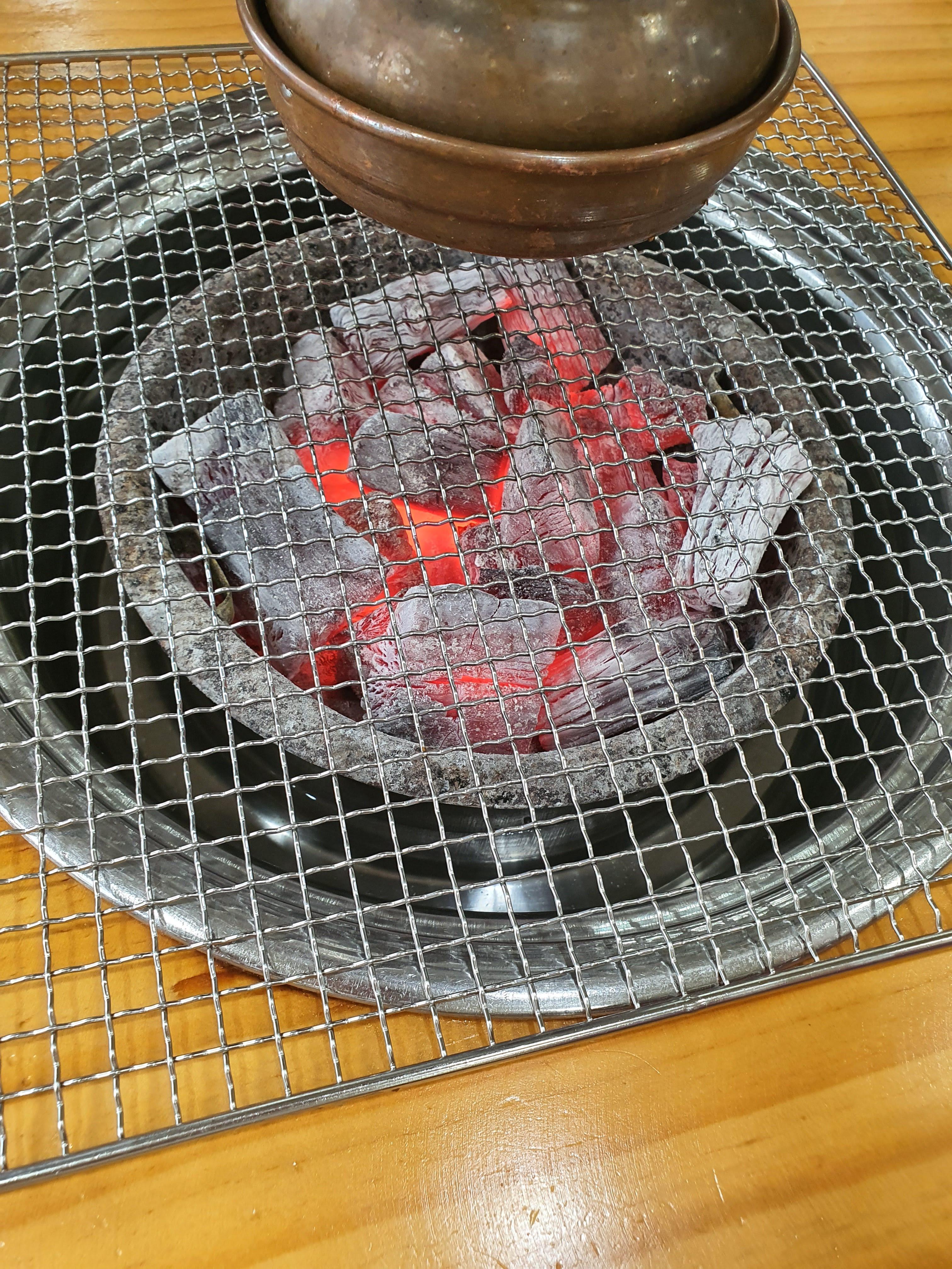 드디어 숯불이 들어오고