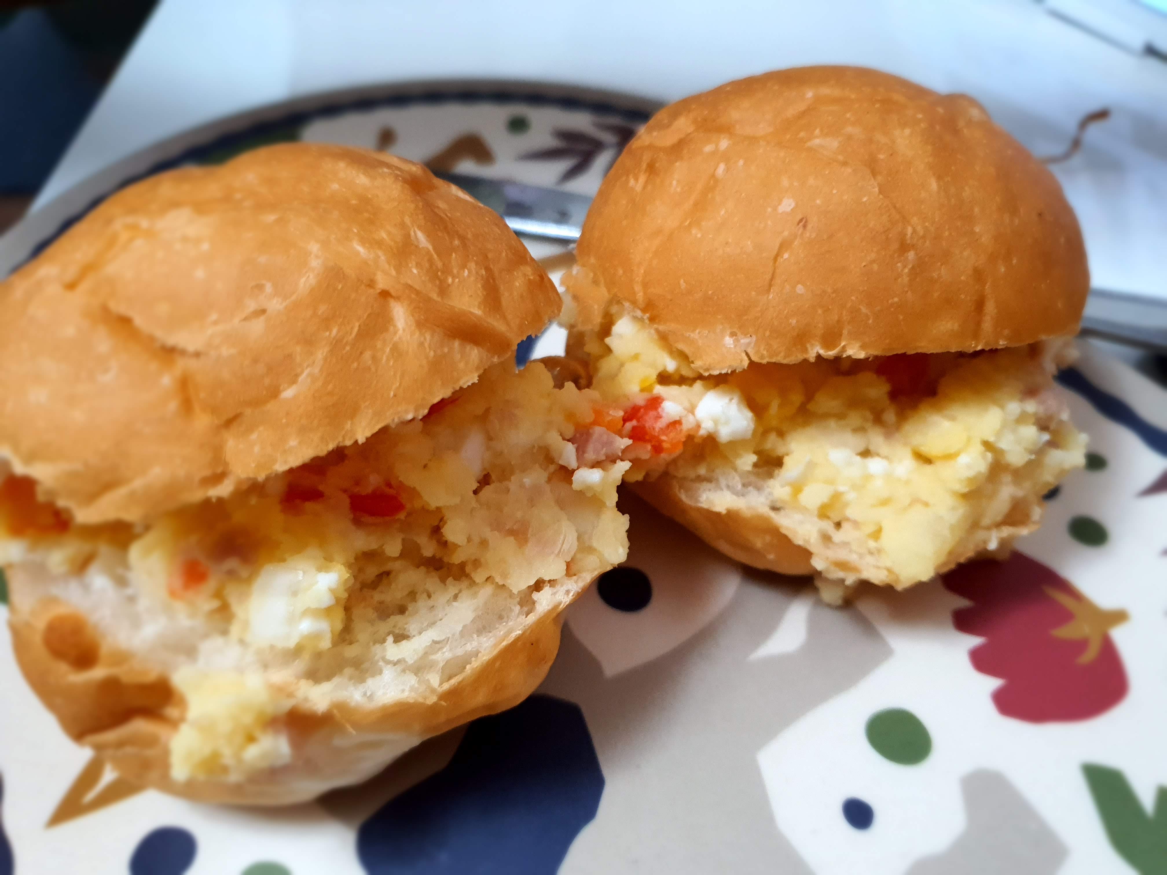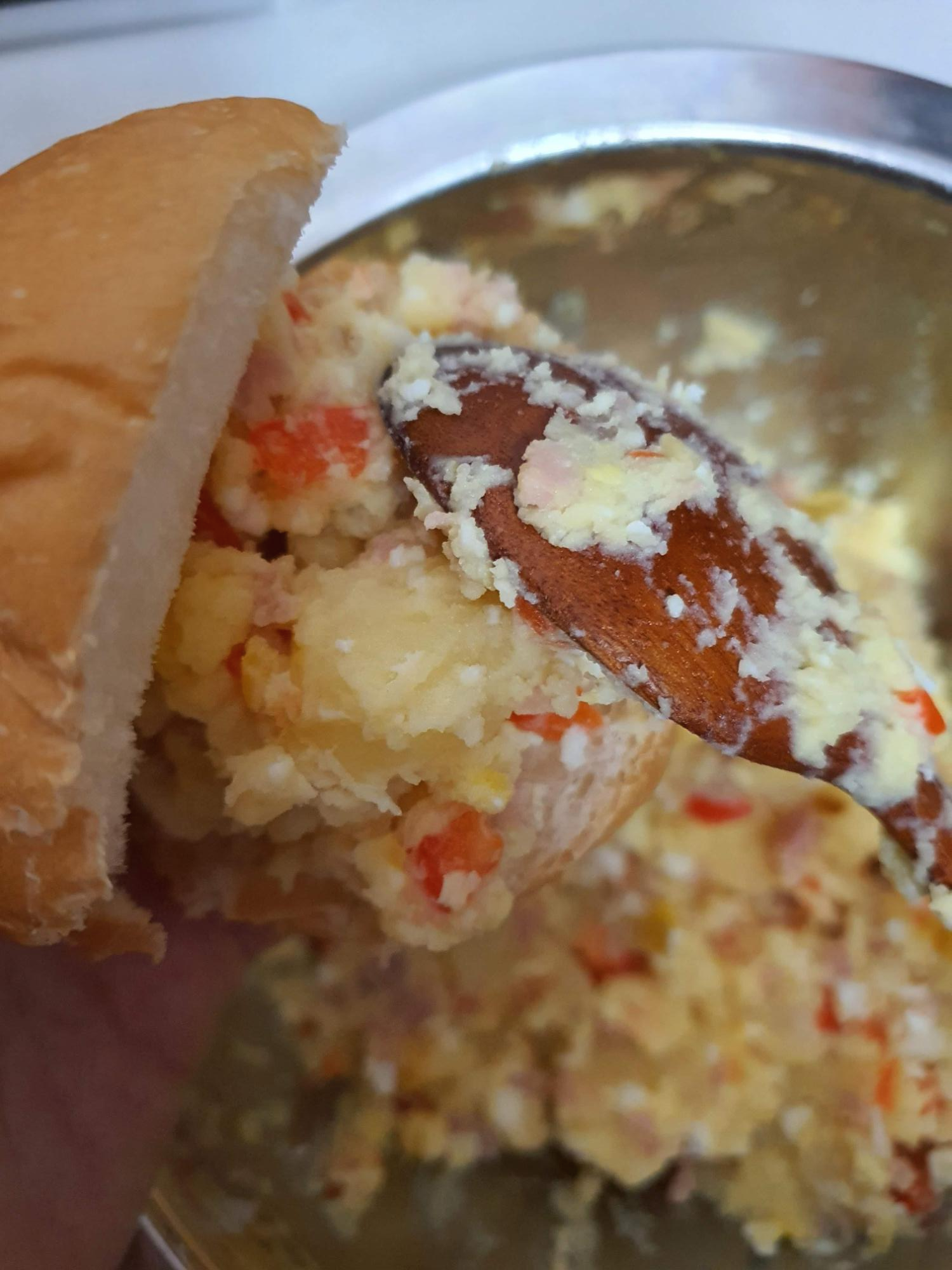 한 스푼 크게 떠서 모닝빵에 잘 눌러 담아준다.