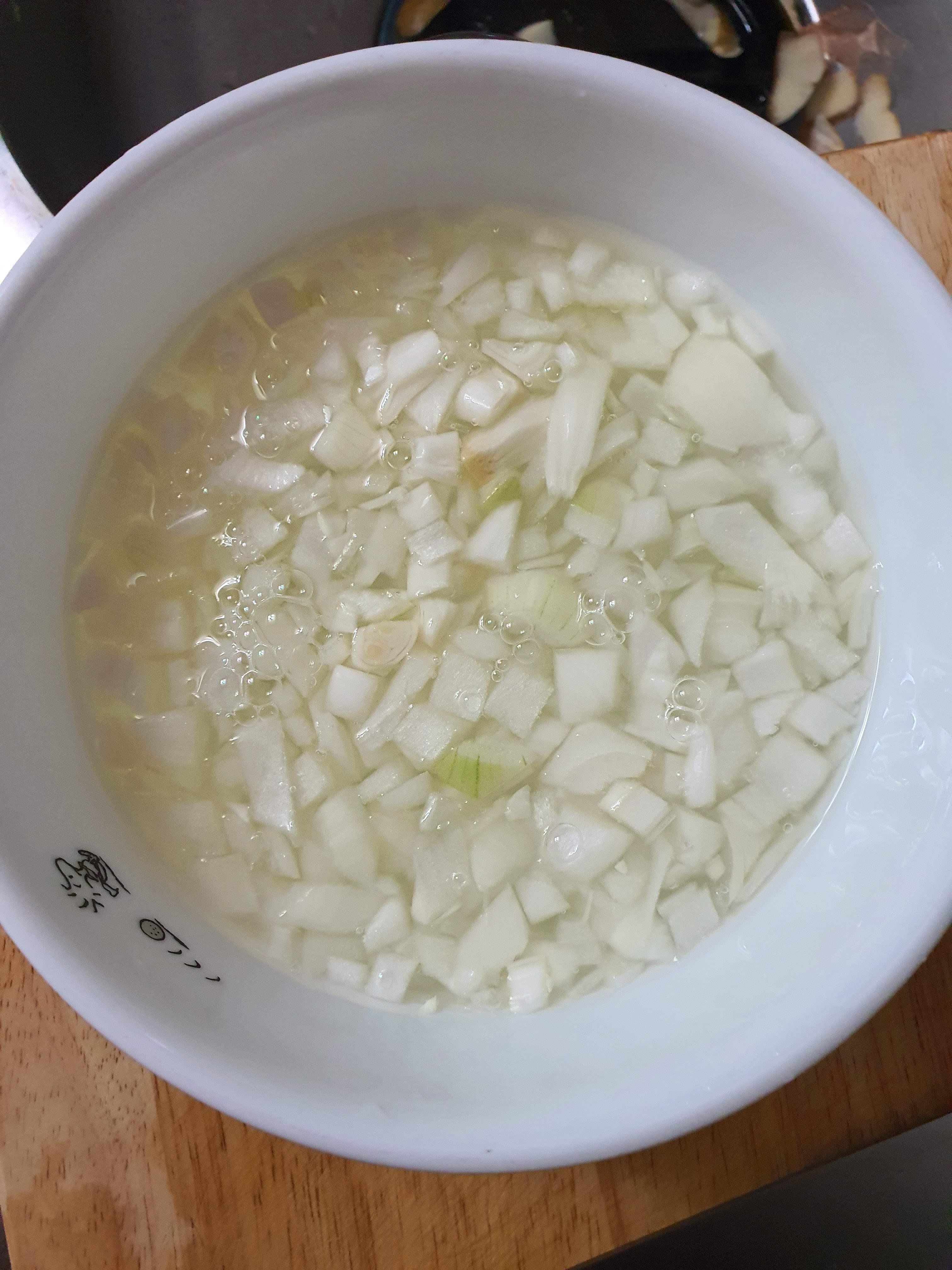 매운맛이 빠지도록 물에 잠시 담가 둔다.