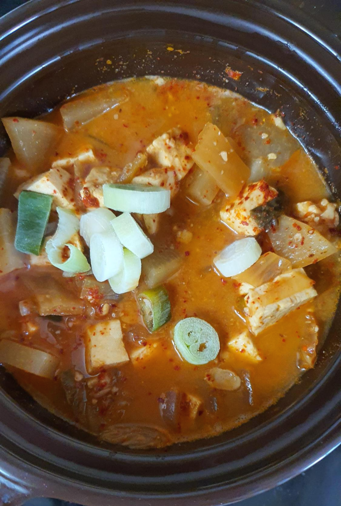 순서는 육수가 우러나면 무를 넣고 끓이다가 김치를 넣어준다.