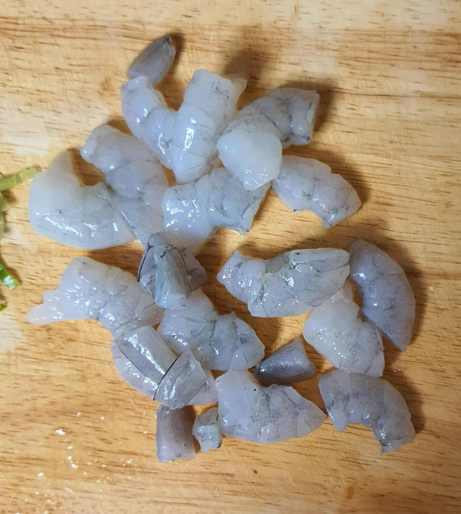 해동된 새우를 먹기 좋은 크기로 썰어준다.