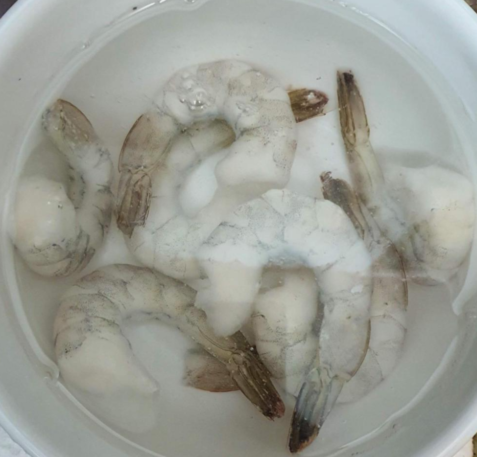 먼저 냉동새우를 꺼내서 해동되도록 물에 담가둔다.