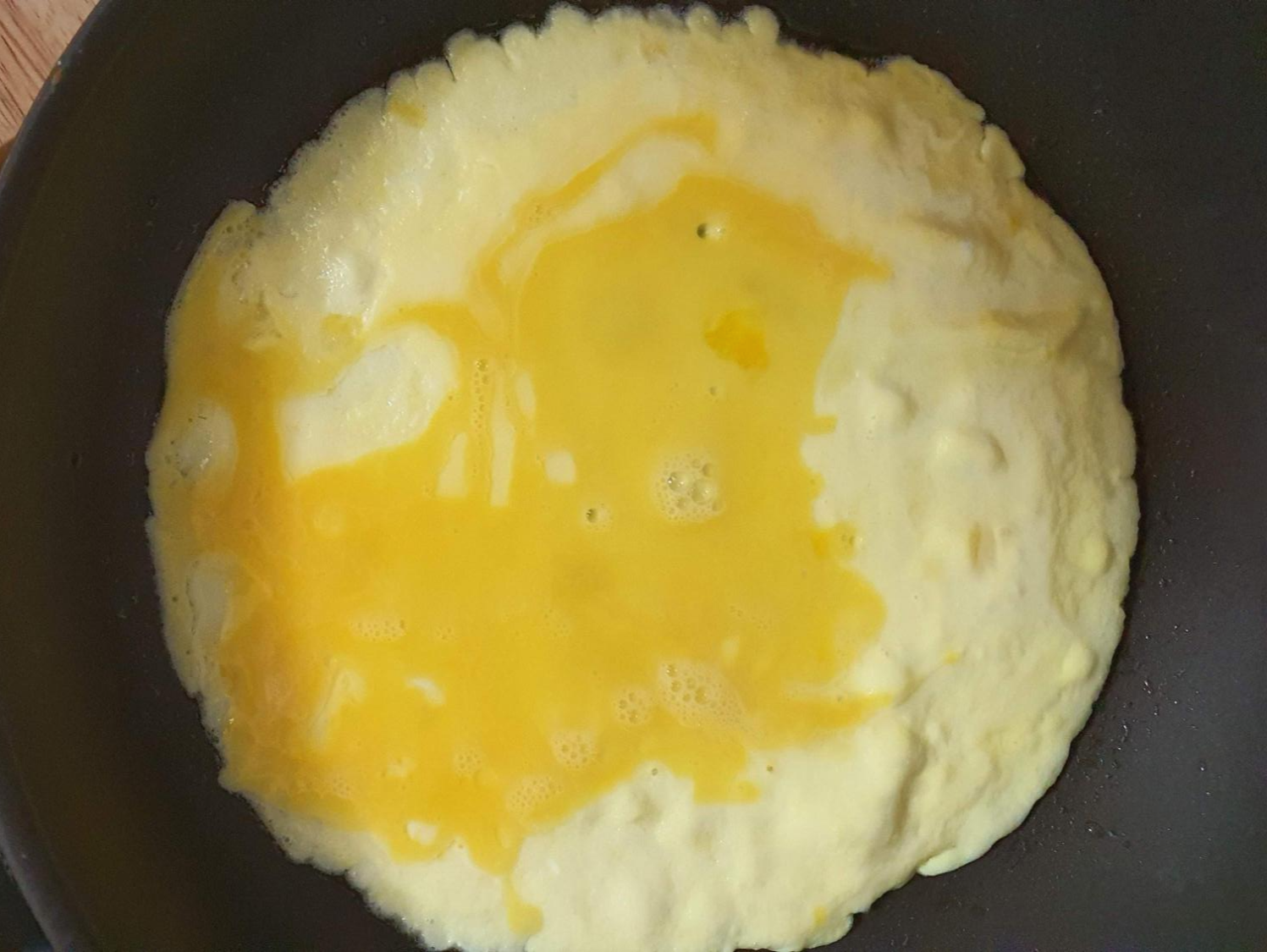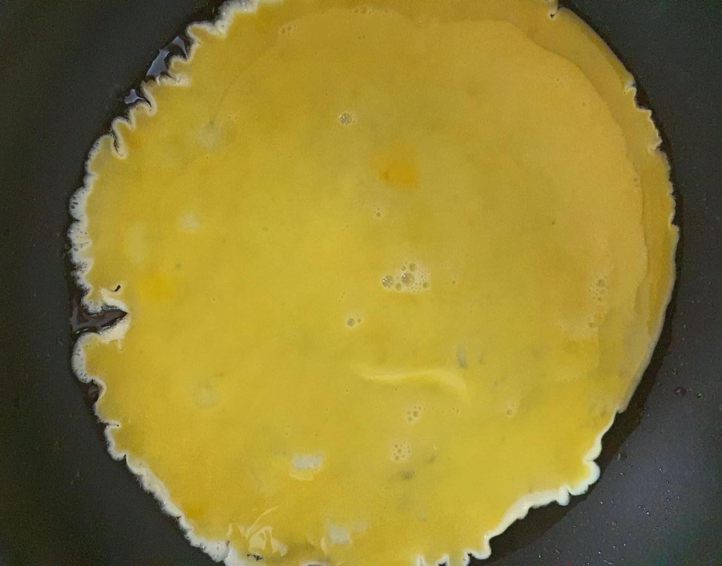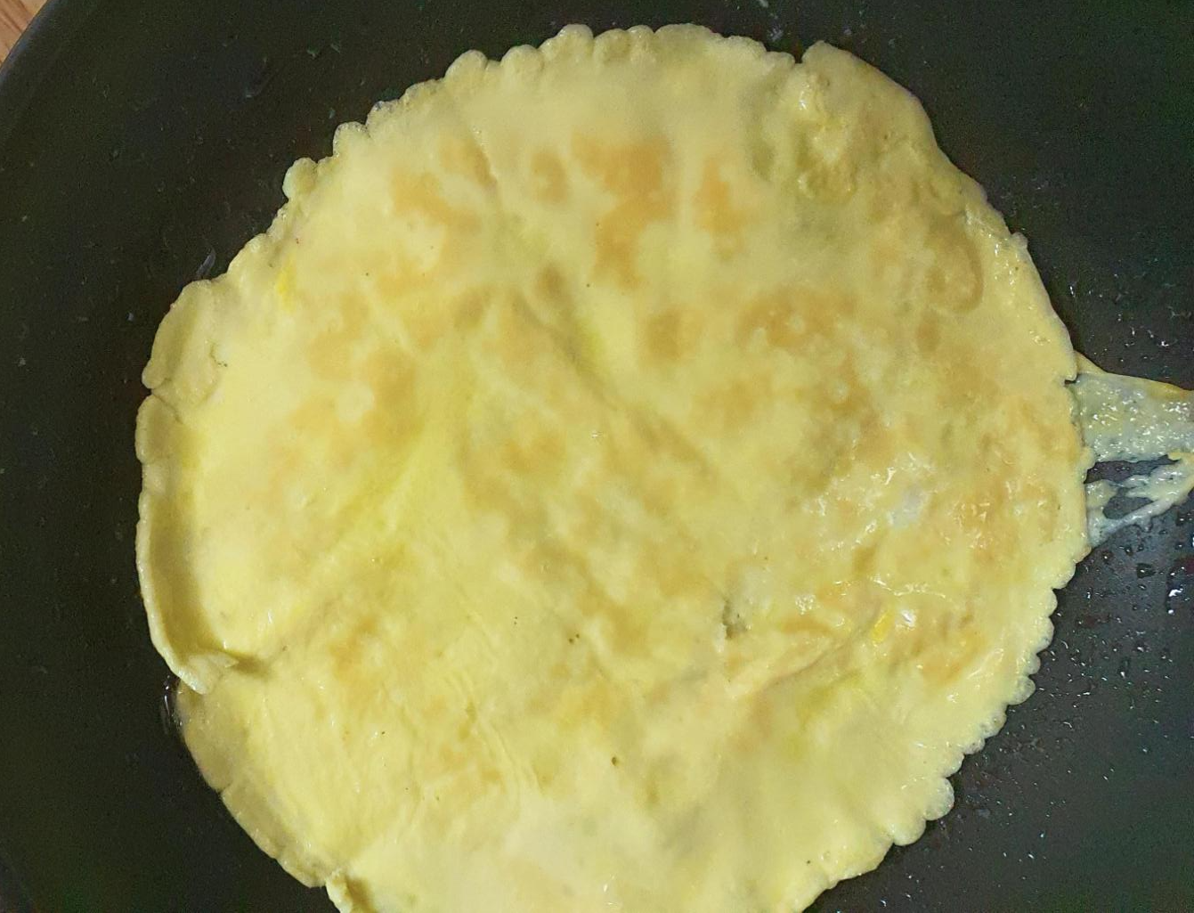 지단 만드는 방법은 먼저 계란을 풀어서 프라이팬에 동그랗게 부친다.