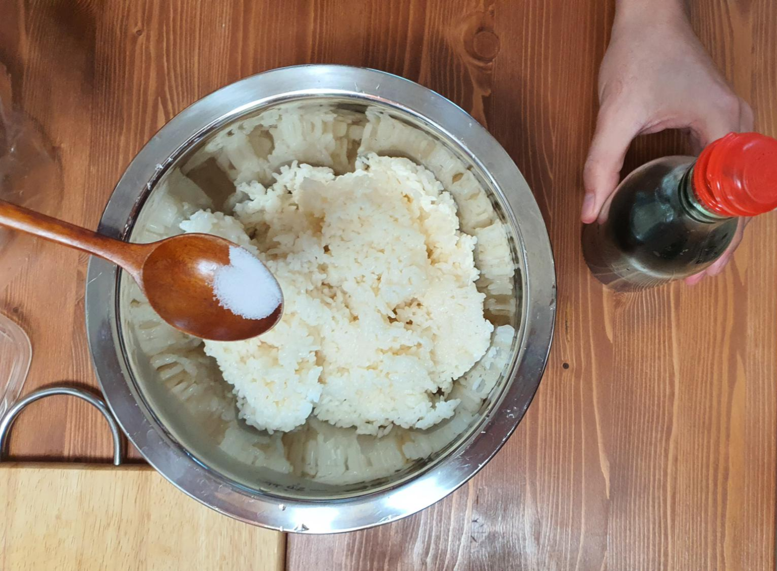 밥에 소금과 참기름을 넣어 간을 해주고~!