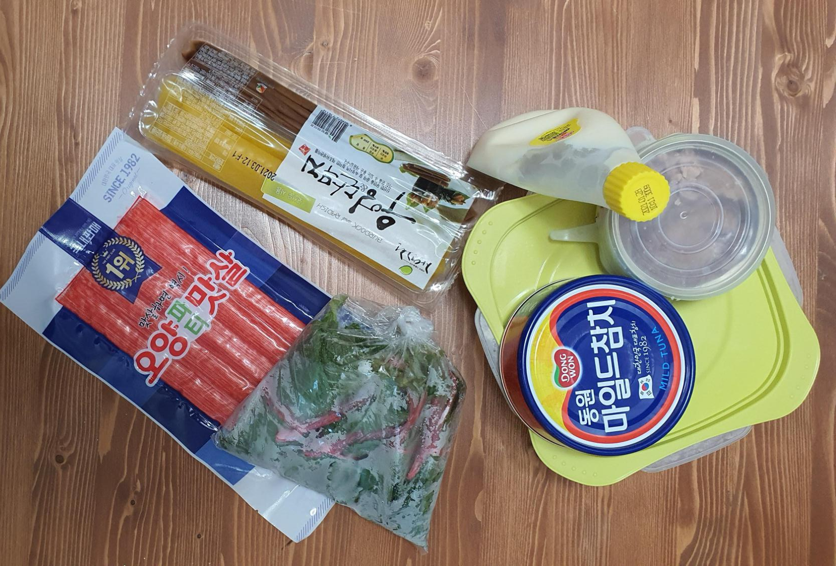 따로 손질할 필요가 없었고 맛살만 잘게 쪼개 주었다.