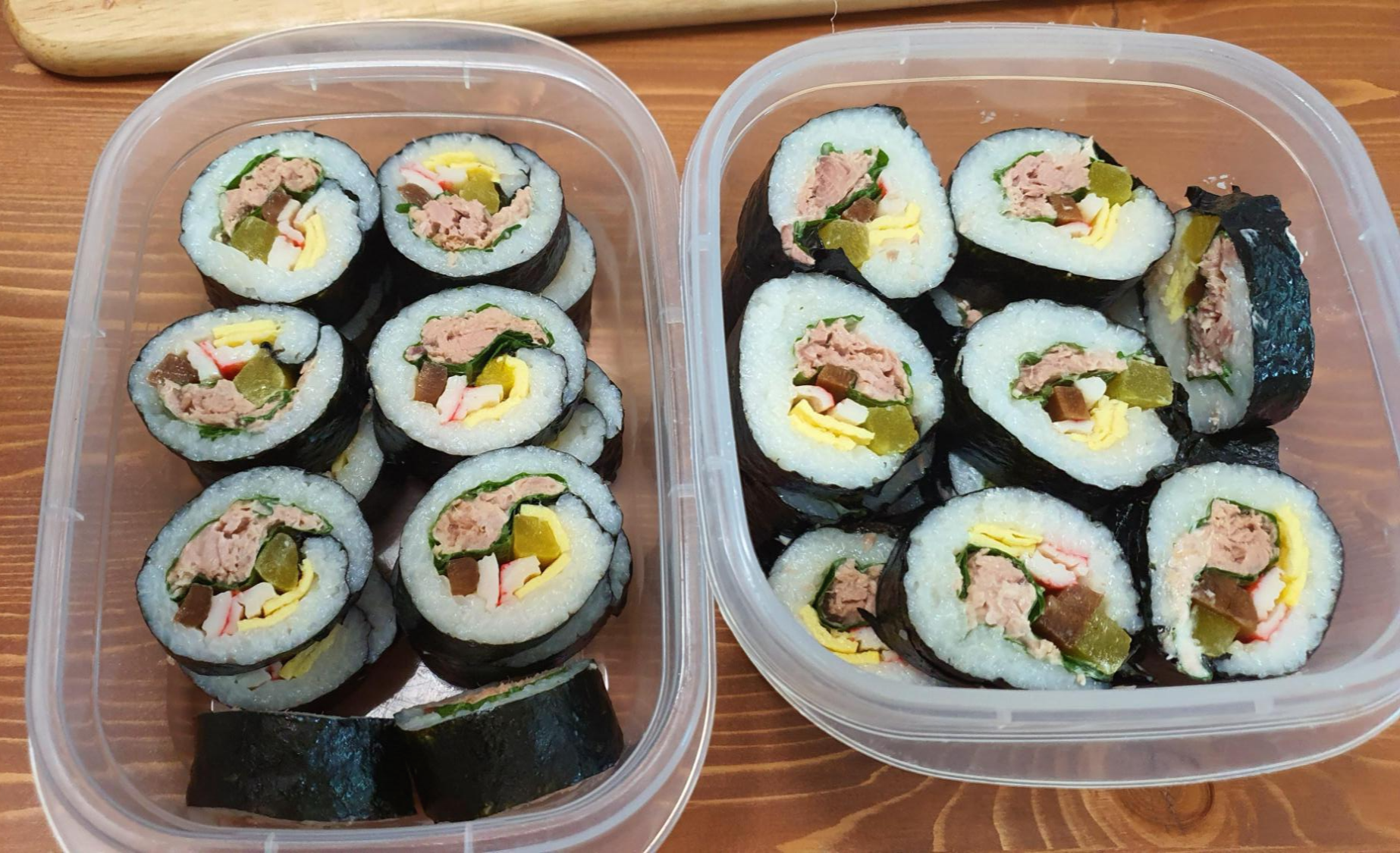 왼쪽은 남편이 만든 김밥 오른쪽은 내가 만든 김밥이다. ㅎㅎㅎ