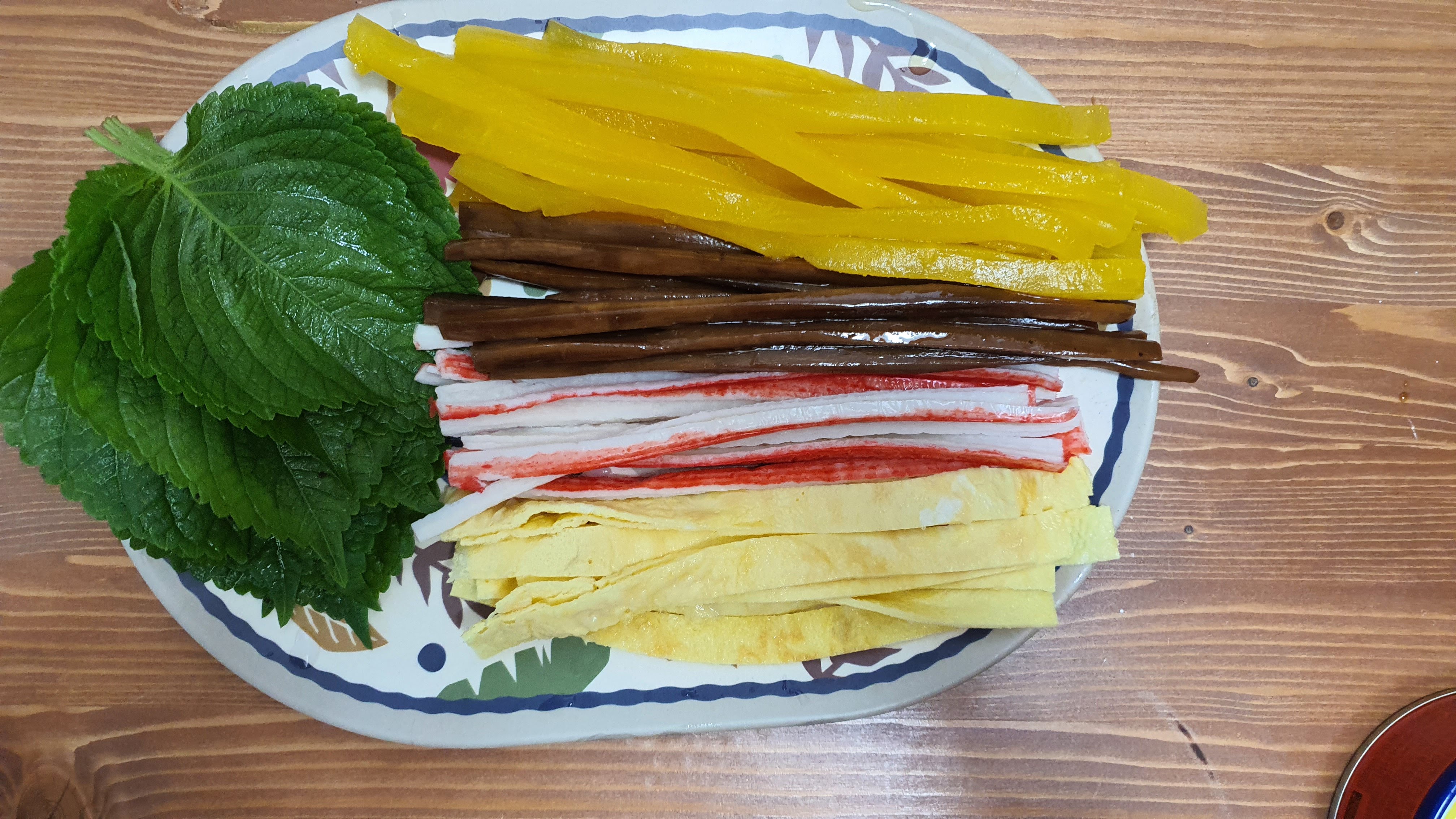 김밥 재료들을 가지런히 준비해 놓는다.