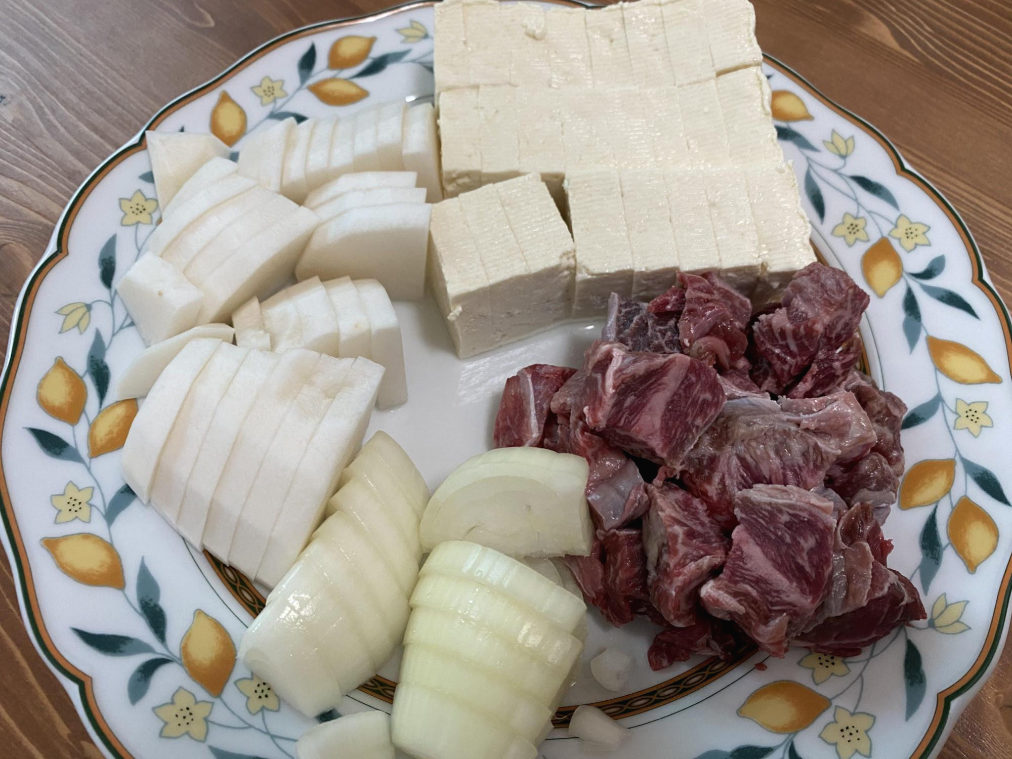 무, 양파, 두부도 적당한 크기로 썰어준다.