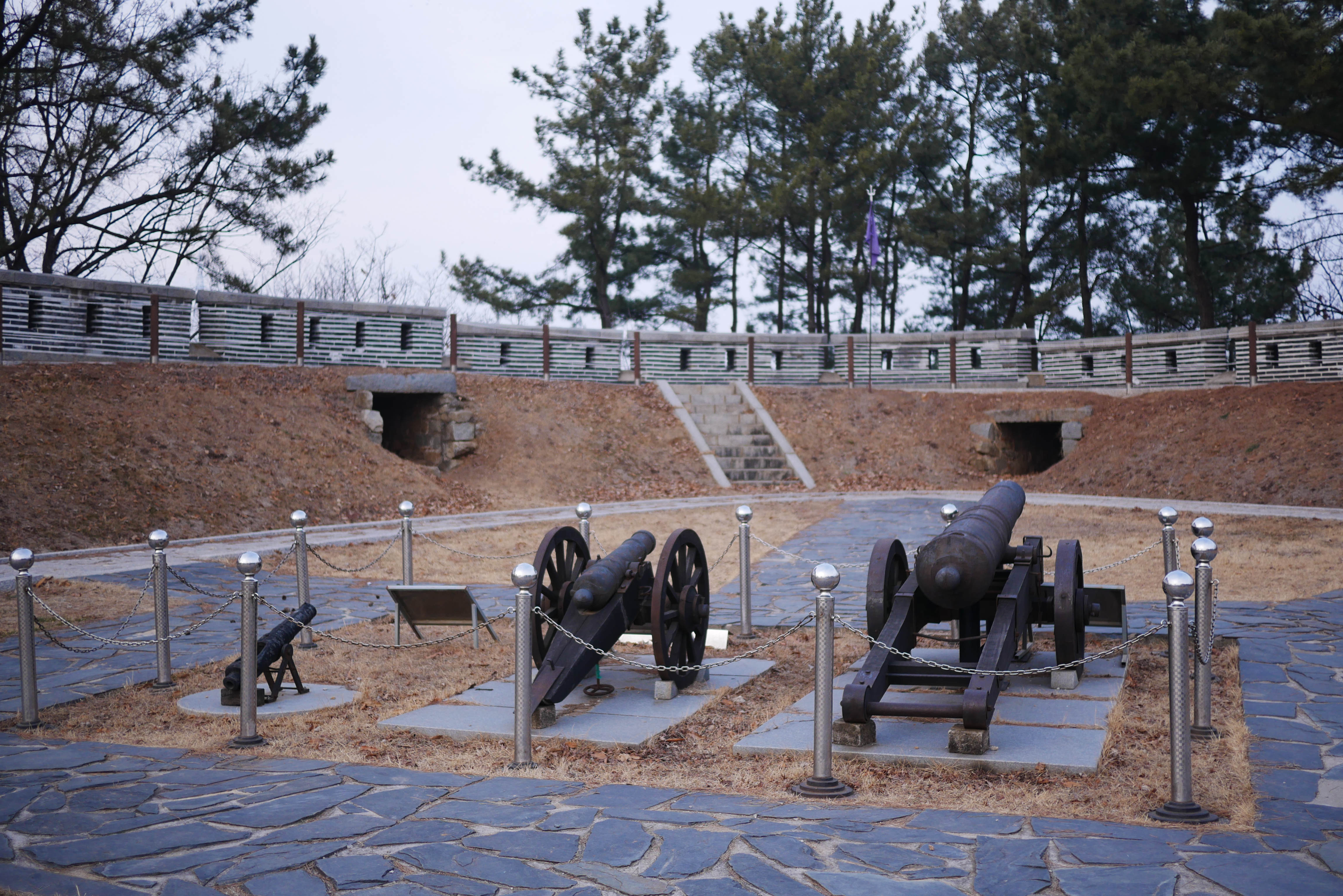 안으로 들어가 보니 세 대의 포가 놓여있었다.
