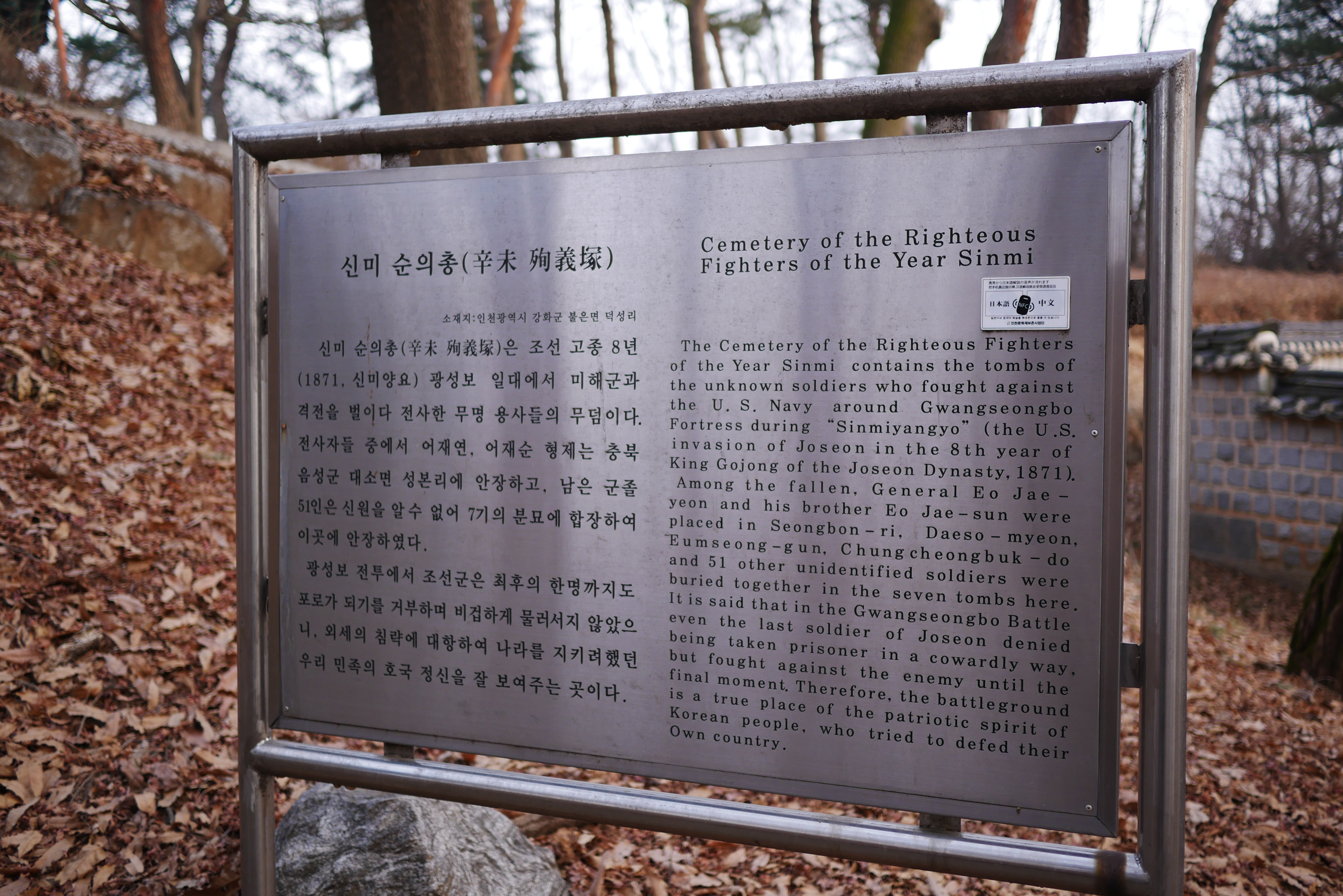 신미양요 때 죽은 무명의 전사자들의 무덤이다.