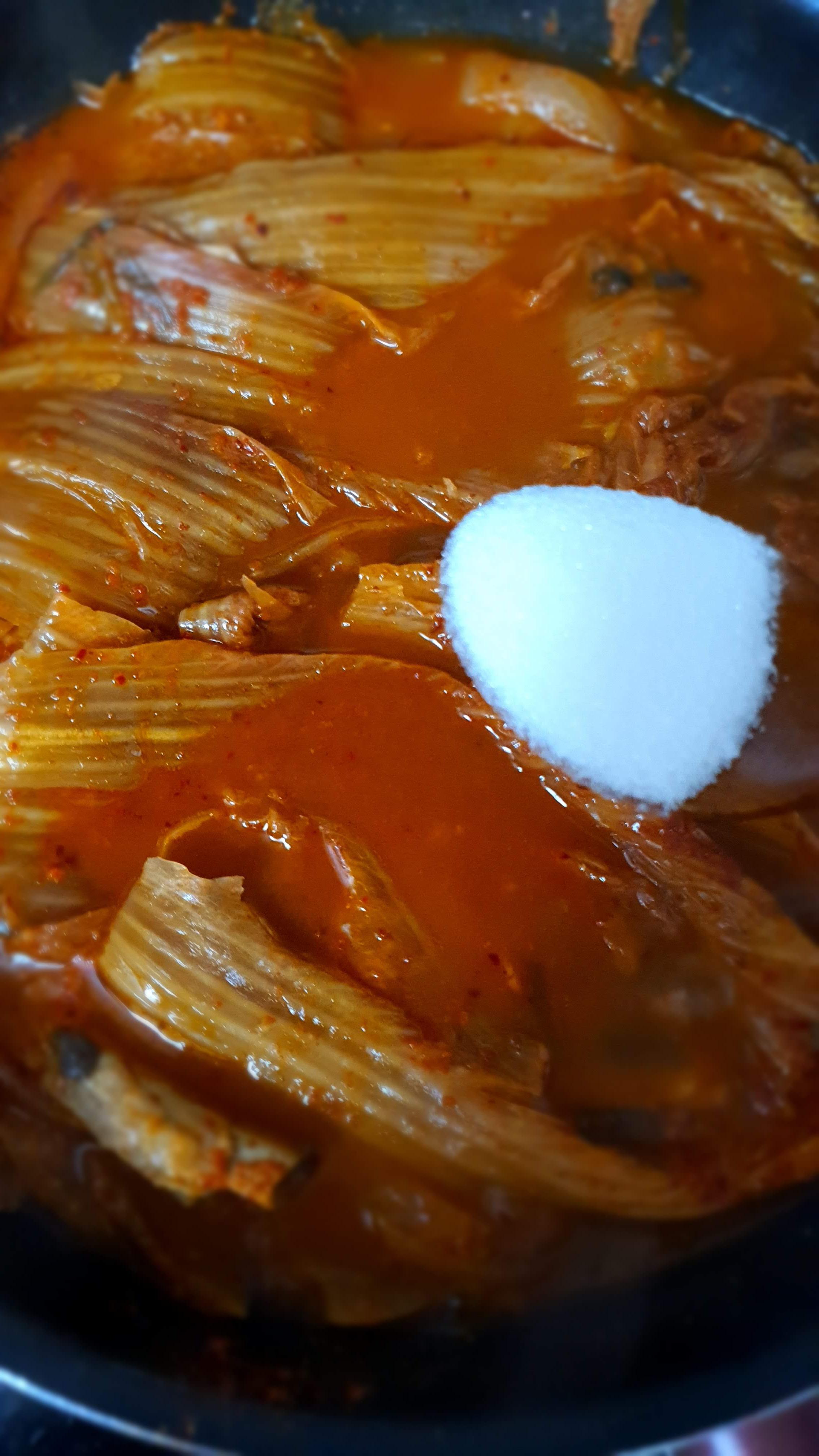 김치가 많이 시어있는 경우에는 설탕을 더 넣고,
