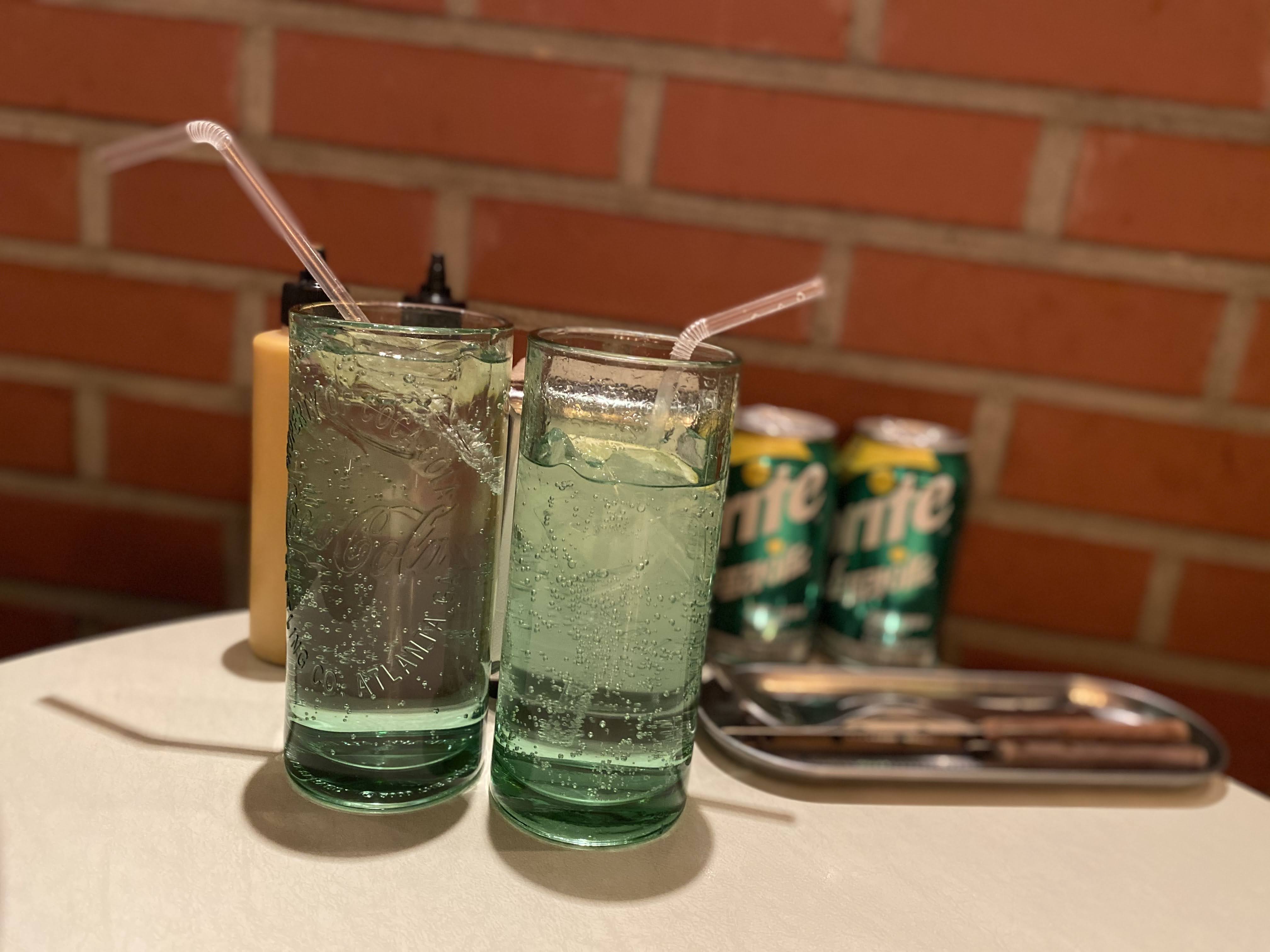 먼저 나온 캔음료 안에 레몬이 들어있다.
