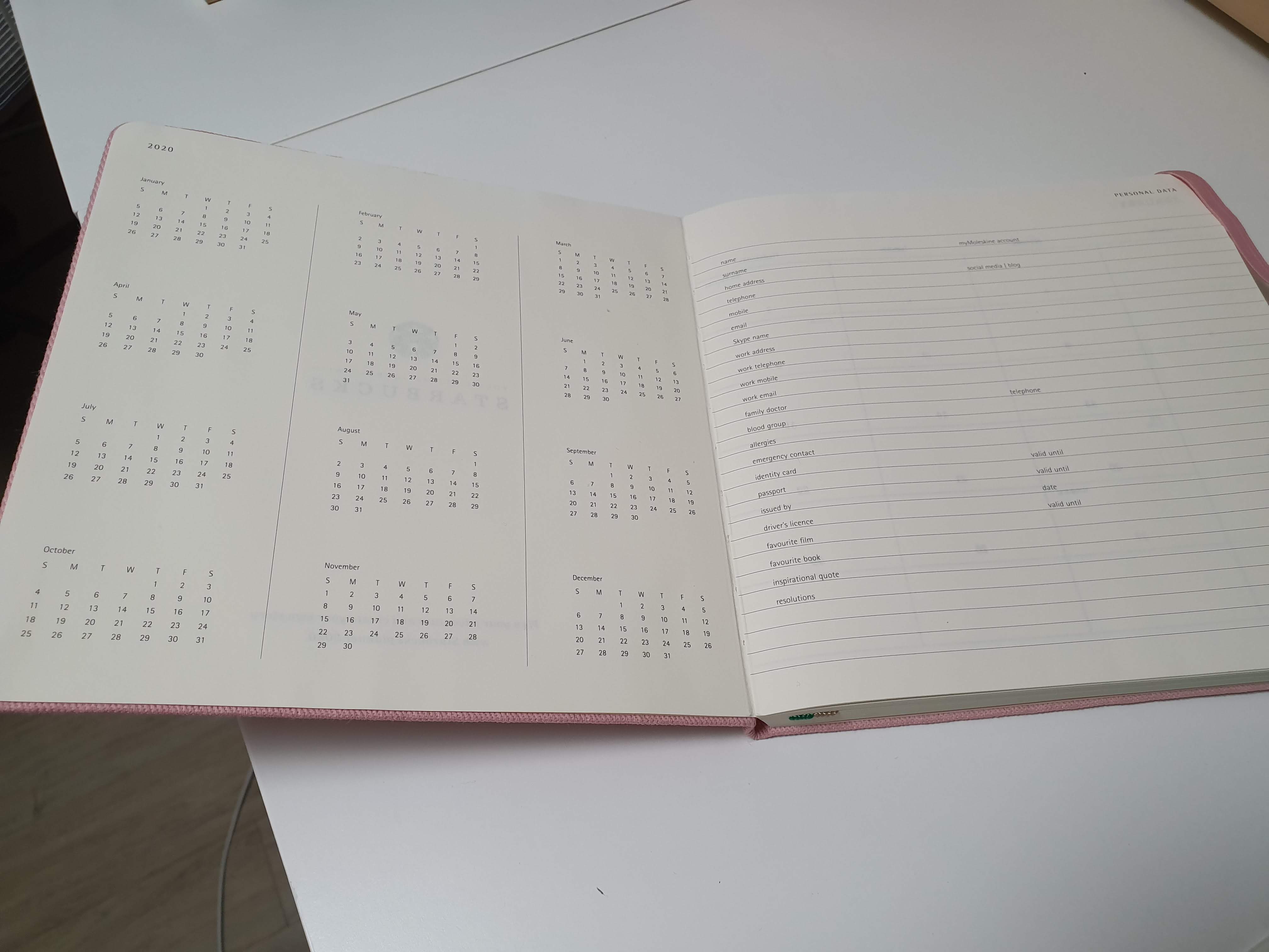 첫 장은 역시 전체 년도 달력과 나의 정보를 적는 란이 있다.