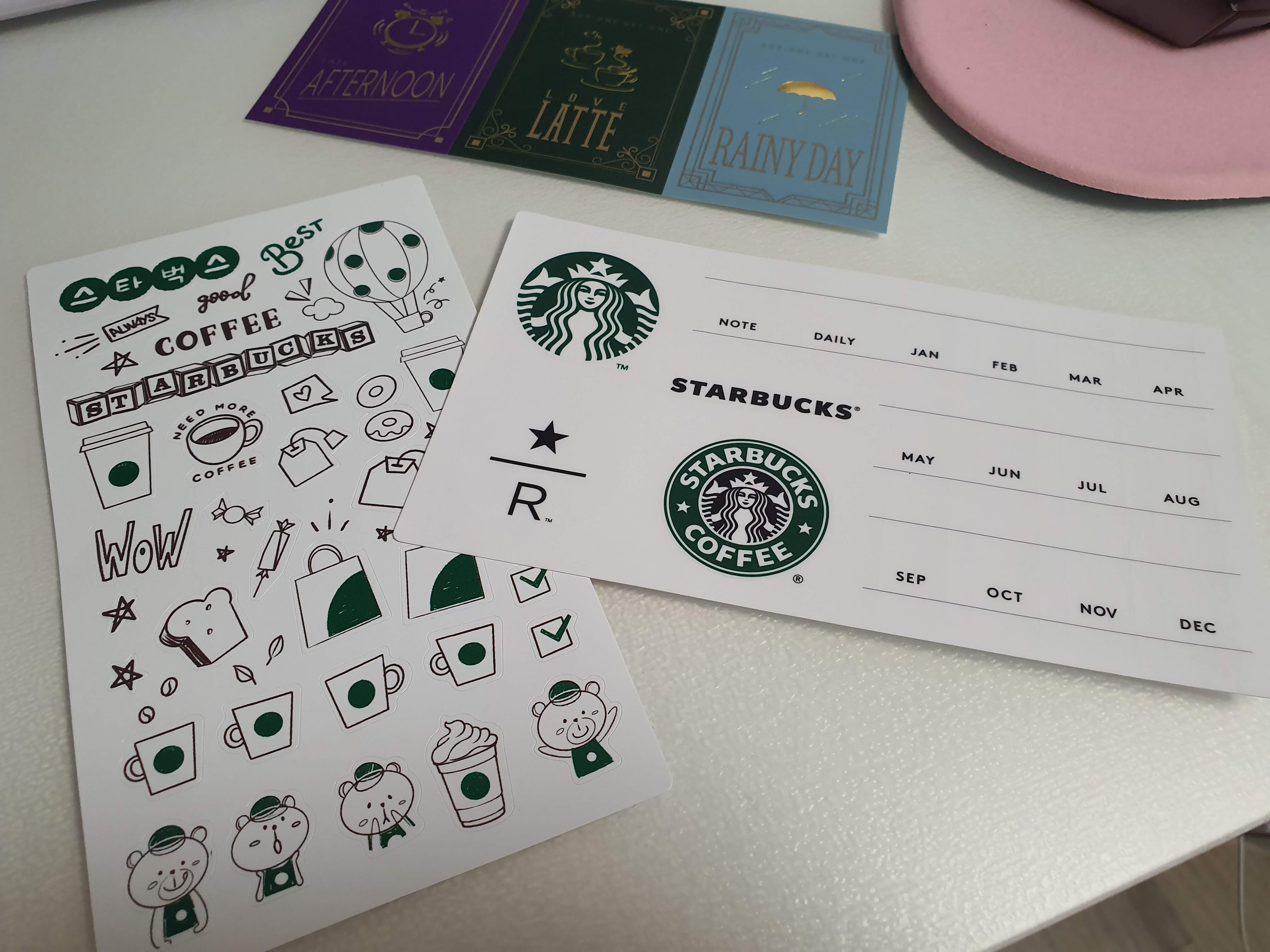마지막으로 스타벅스 쿠폰과 스티커들~!